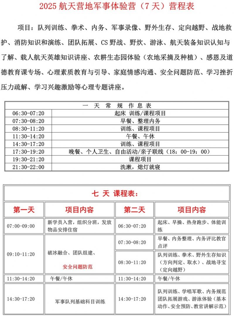 1、参训学员需身体健康,如有传染病、心脏病、癫痫、精神病患者 梦游等不适宜参加训练的一切疾病,将不予接纳。敬请广大家长如实告知;