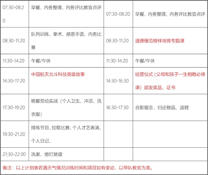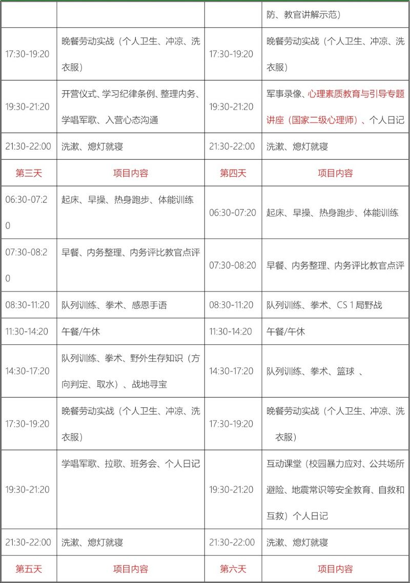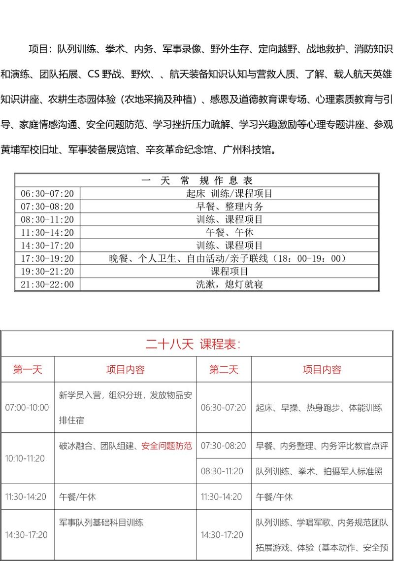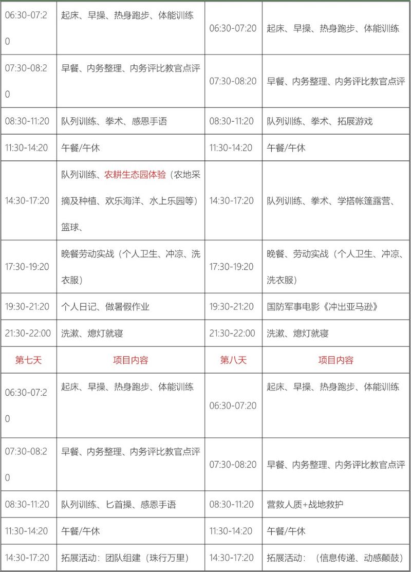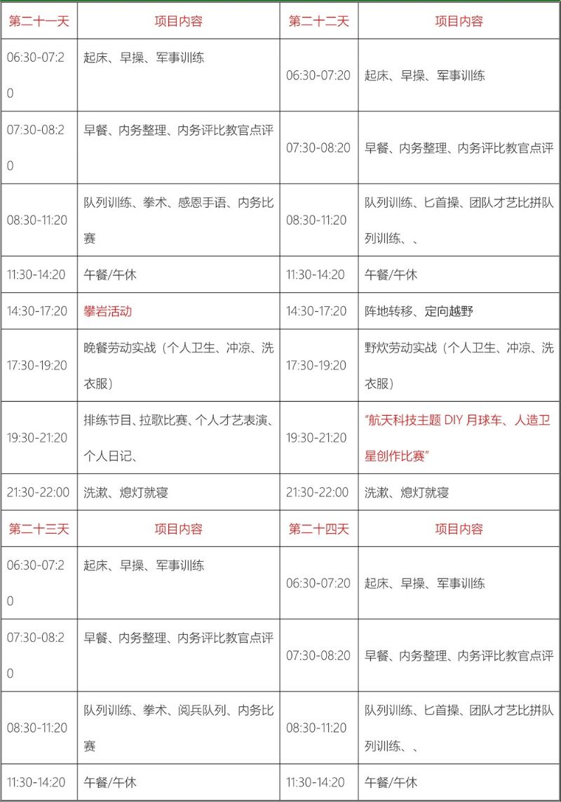 3、入营后未经营地领导同意,不得无故离营,如因个人理由提前离营恕不退费;